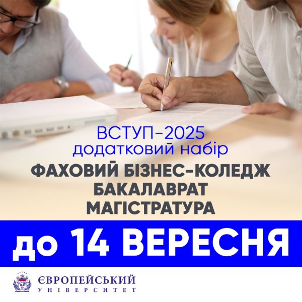 Шановні вступники!Ми наближаємося до завершення додаткового набору до Фахового бізнес-коледжу, бакалаврату та магістратури Європейського університету.Кінцевий термін подання документів — 14...