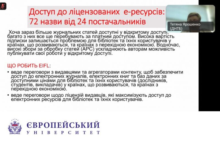 ПВНЗ «Європейський університет» підписав декларацію про приєднання до Консорціуму «EIFL-Україна». Членство в консорціумі забезпечує безперешкодний та безкоштовний доступ до ліцензованих...