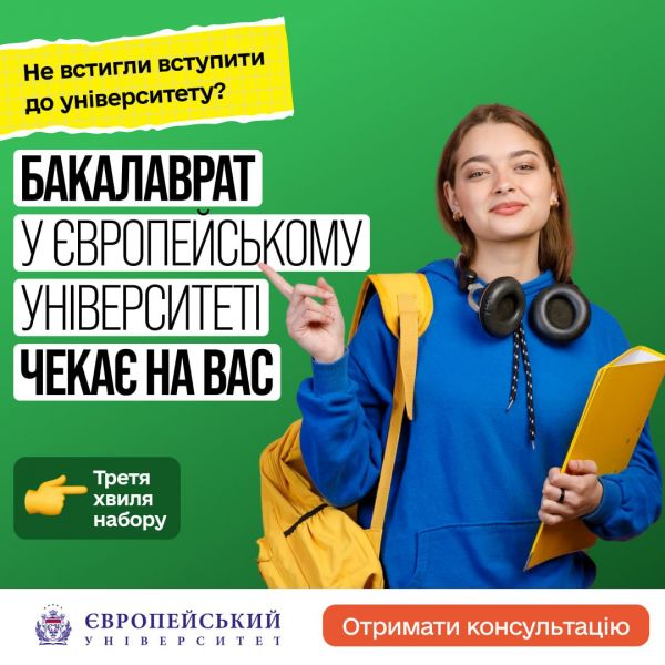 Третя хвиля вступної кампанії триває до 14 жовтня.Європейський університет запрошує на Бакалаврат випускників 11 класу. Отримайте якісну та престижну освіту...